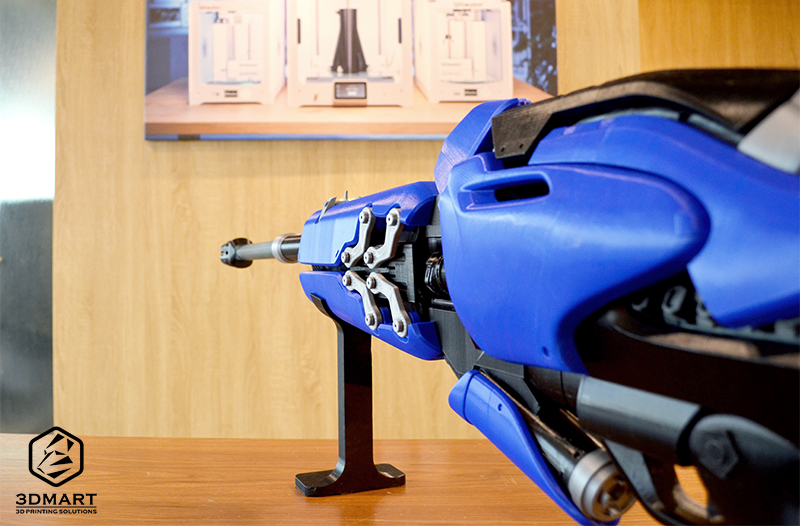 這次的真人版「奪命之吻」最大長度為140公分,需要一個成人用兩隻手才拿得動,採用3D列印各部件再組裝的方式完成。本次使用的3D列印機皆為雙噴頭系統(tǒng)的Ultimaker S5、Ultimaker 3,採用0.15mm的高精度層厚,線材為PLA搭配水溶性支撐PVA進行列印。