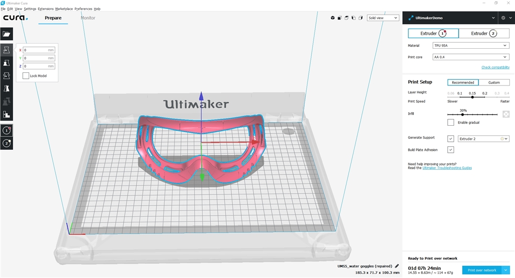 【3D列印應(yīng)用】Ultimaker混合材料測(cè)試:TPU彈性眼鏡框 三帝瑪先發(fā)實(shí)測(cè)又來(lái)啦!上次已經(jīng)分享過(guò)SLS技術(shù)的Sinterit彈性眼鏡框(延伸閱讀:超彈力泳鏡框「粉末」登場(chǎng)!),那麼FDM的TPU材料又如何呢?我們又忍不住為大家優(yōu)先測(cè)試,先一起來(lái)看看它完成後的表現(xiàn): 原本的3D模型就非常帥氣,文末附上連結(jié)讓大家可以自行測(cè)試。 我們這次使用TPU搭配PVA,Ultimaker官方資料中並不建議同時(shí)使用這兩種材料,不過(guò)三帝瑪要率先嘗試這個(gè)做法。本次使用Ultimaker S5進(jìn)行3D列印,預(yù)設(shè)非常細(xì)緻的參數(shù)值,雙噴頭系統(tǒng)可以一次列印兩種不同材料,支撐則會(huì)自動(dòng)形成,完全不需要自己另外建立。 這次採(cǎi)用晶格狀的支撐形式,圖中白色的部分就是可以放入水中溶解的PVA,黑色就是鏡框本體TPU。 經(jīng)過(guò)一天多的時(shí)間列印完成囉!接著就是拿到水裡泡澡等待PVA完全溶解,雖然只要用一般冷水就可以了,不過(guò)對(duì)於大塊體積的物體我們都會(huì)在水箱內(nèi)搭配打氣機(jī),溶解速度會(huì)加快不少。 本次3D列印採(cǎi)用PVA支撐溶解後的TPU彈性眼鏡框終於完成,和一般以拆除方式進(jìn)行的支撐比起來(lái),表面更加乾淨(jìng)漂亮。 工業(yè)用的TPU 95A(熱塑性聚氨酯)線材,特性介於橡膠與塑膠之間;具有半柔性且耐化學(xué)腐蝕的特點(diǎn),具有較強(qiáng)的機(jī)械性能。此外,它也比其他的TPU材料更容易進(jìn)行3D列印且速度更快。 若需要彈性材質(zhì)的3D列印測(cè)試原型,TPU 95A線材提供您另一種快速優(yōu)質(zhì)的好選擇,想了解更多使用TPU 95A進(jìn)行3D列印的訣竅可以參考這裡。 想知道更多3D列印實(shí)測(cè)?歡迎持續(xù)關(guān)注三帝瑪官網(wǎng)及粉絲專頁(yè),我們會(huì)持續(xù)為各位提供3D列印的訊息及測(cè)試。先前分享過(guò)另一種SLS技術(shù)的Sinterit眼鏡框,也提供給各位共同比較喔! 追蹤粉絲頁(yè)、消息不漏接:https://www.facebook.com/www.jinshanghunli.com/ 檔案來(lái)源:https://grabcad.com/library/water-goggles-1