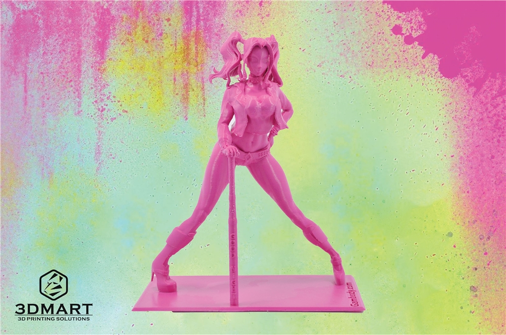 【3D列印快訊】辣翻天的小丑女駕到! 最近三帝瑪又3D列印了一個(gè)新的玩具公仔,使用超級(jí)少女的粉紅色PLA線材搭配水溶性PVA線材, 來(lái)呈現(xiàn)更完整的模型細(xì)節(jié),這次登場(chǎng)亮相的是自殺突擊隊(duì)中辣翻天的小丑女。 想必看過(guò)電影的人應(yīng)該對(duì)這個(gè)角色的印象極為深刻吧,瘋狂的行徑配上火辣的身材讓你想不注意他都難, 就讓我們一起來(lái)瞧瞧3D列印的小丑女模型吧! 先使用Ultimaker3 3d列印機(jī)列印,時(shí)間須約3天,層厚0.1mm 列印完成時(shí),因?yàn)橛蠵VA線材支撐的關(guān)係,還看不太出實(shí)際的造型,一切要等取出模型泡水後才能看到完整的樣貌。 將模型泡水約一天的時(shí)間後,就能看到小丑女的廬山真面目啦! 前凸後翹的好身材,小編在拍照時(shí)差點(diǎn)噴鼻血,先來(lái)看看它的正面照 特別合成電影海報(bào)背景,看起來(lái)真的超有feel的呀~~~ 背面照當(dāng)然也不能放過(guò),蜜桃翹臀超級(jí)吸睛的阿阿 (忍不住癡漢模式啟動(dòng)),-頭髮的飄逸感也都有列印出來(lái)。 若你也對(duì)小丑女模型感興趣,歡迎自行付費(fèi)下載來(lái)列印看看唷! 載點(diǎn)在此 請(qǐng)取用 https://www.gambody.com/3d-models/harley-quinn-3d-model