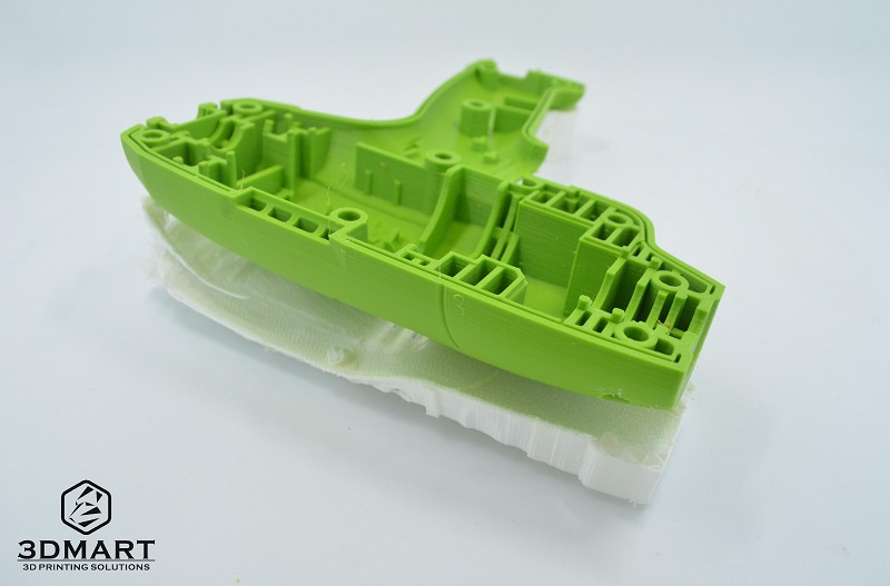 【3D列印快訊】Breakaway分離線材 開印文來囉! 繼水溶性PVA線材之後,Ultimaker又推出了新款的支撐線材Breakaway,到底它的特色跟用處如何呢? 今天就要來帶大家實(shí)際體驗(yàn)列印搭配分離線材的好處囉! 首先使用我們雙噴頭的Ultimaker3列印機(jī)進(jìn)行印製,這次挑選一個(gè)電鑽(半邊)的模型圖檔,下方的部分搭配我們的 分離支撐材,要記得雙料列印時(shí)一定要開塔唷! 這裡我們將設(shè)定調(diào)為層厚0.2mm、填充率15% ,這次的列印時(shí)間約為19小時(shí)。 列印完成後就可以開始拆支撐囉! 相信拆支撐對很多人來說都是噩夢一場,常?;ㄙM(fèi)許多時(shí)間用工具又拉又拔的拆除,而且也不能一次性的將整塊移 除,通常都還要各別拆除,現(xiàn)在改用Breakaway作為支撐的部分讓一切變得輕鬆多囉! 拆解的步驟一樣是準(zhǔn)備一只尖嘴鉗,夾住支撐材的部分用力的與主體拉開來,分離支撐材的大部分會成為完整的一 片,就連凹洞處也一併被拉起拆除,只會剩下非常小部分的支撐需要剝除,拆除部分的表面也呈現(xiàn)出十分光滑的質(zhì)量。 跟PVA水溶性支撐材相較之下,不用等待漫長的泡水時(shí)間,更能節(jié)省時(shí)間,與一般線材做支撐時(shí)相比也省掉拆除與 打磨的時(shí)間。 上圖為 支撐拆除後的接觸表面,幾乎不需要做後製打磨處理的表面品質(zhì)。 上圖為 拆除的分離Breakaway支撐材 是不是覺得十分方便呢? 趕快買一卷來使用看看,你應(yīng)該也會迷上這種簡單拆除支撐的方式的,讓你下次拆支撐的體驗(yàn)更加美好,省時(shí)也省力。