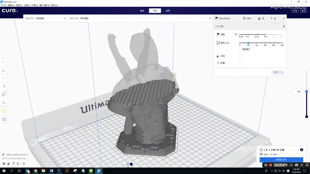 放進切片軟體Cura 4.0中,有可以預(yù)覽所有列印路徑的功能,以0.15mm的層厚列印約需一天左右,整體完成後體積約17x24x30cm。我們使用最新機型Ultimaker S5 3D列印機列印這個大型物件,圖中可以看到FDM特有的堆疊紋理,這是因成型技術(shù)的原理所產(chǎn)生,各位可以比較三種3D列印技術(shù)的優(yōu)缺點,選擇最符合需求的形式。(延伸閱讀:3種常見3D列印技術(shù)比較及整理。)