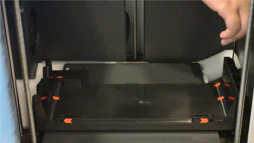 打開玻璃門,下方有紅色箭頭,兩個螺絲需要先轉開。AMS就可以從上方取出。撕下列印頭的保護紙板,取出線材清洗槽的泡棉。