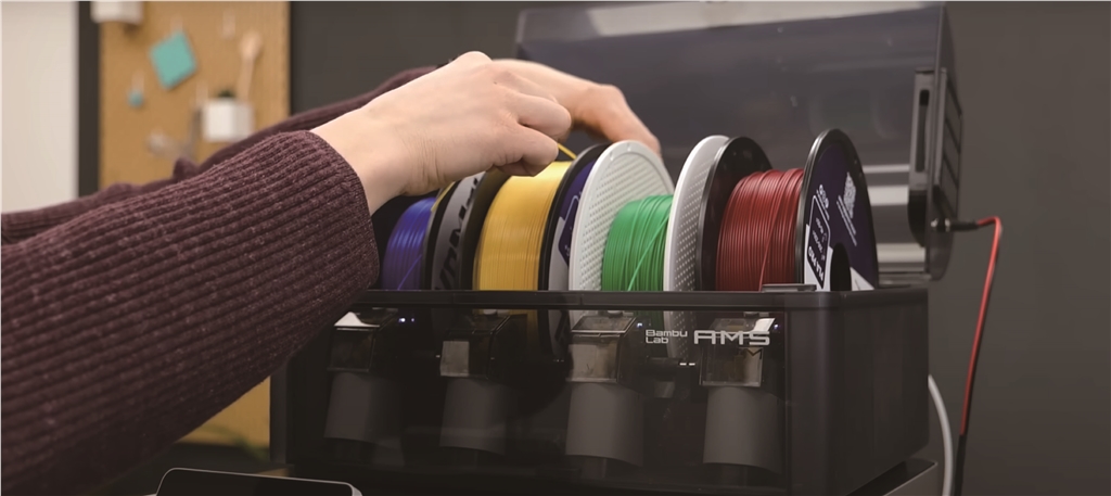 例如,使用 Bambu Lab X1,AMS 中有多軸線材,而每根線材都可以送入列印室的一個(gè)熱端。