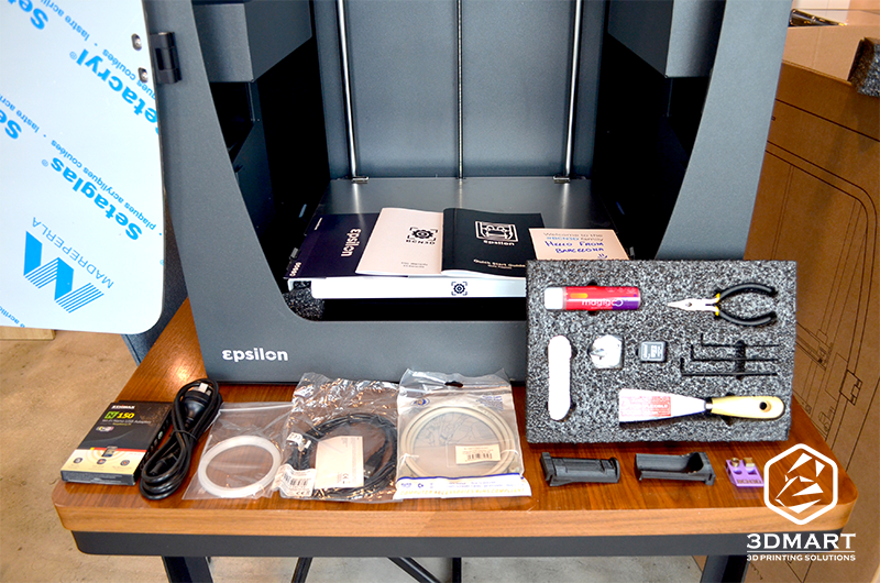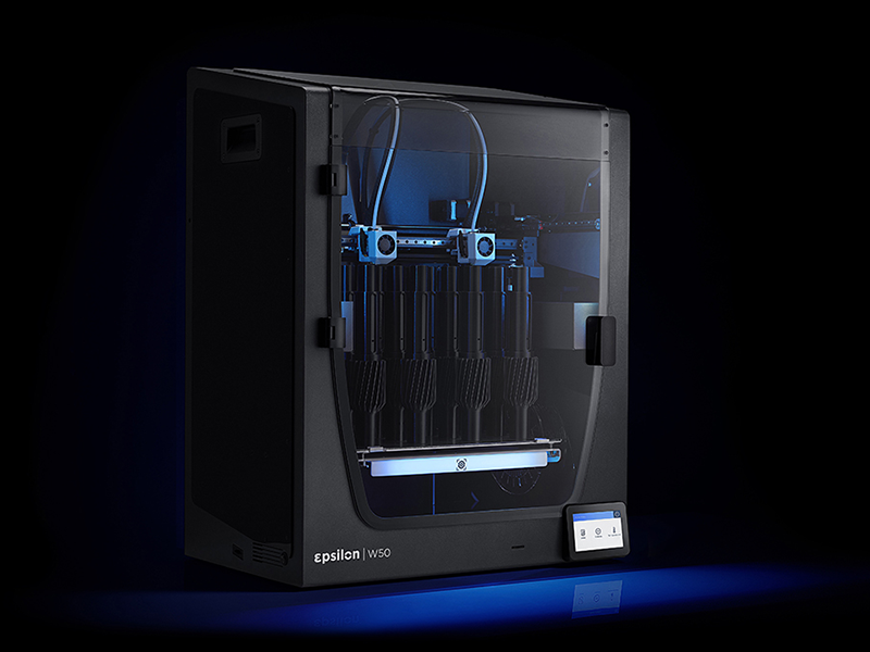 BCN3D Epilon W50 3D列印機(jī)是由鋁框結(jié)構(gòu)組成,黑色機(jī)身搭配玻璃門,首次開箱可以看到,玻璃門和上蓋都會有保護(hù)膜安全包裝;密閉式的列印空間,可列印的尺寸高達(dá)420 x 300 x 400 mm,設(shè)備啟動後室內(nèi)會開啟藍(lán)光,看起來非常高級又有質(zhì)感!