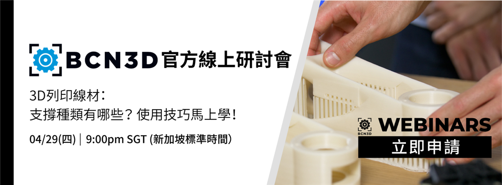 「支撐」是什麼?哪種適合你?使用訣竅有哪些?BCN3D團(tuán)隊(duì)官方線上研討會(huì),於4/29(四)登場(chǎng),主要介紹「3D列印支撐線材」種類、教學(xué)使用技巧、分享實(shí)際應(yīng)用效果,免費(fèi)學(xué)習(xí)機(jī)會(huì),內(nèi)附連結(jié)馬上申請(qǐng):