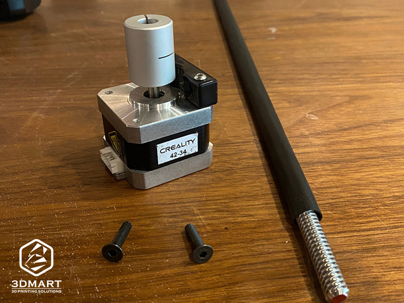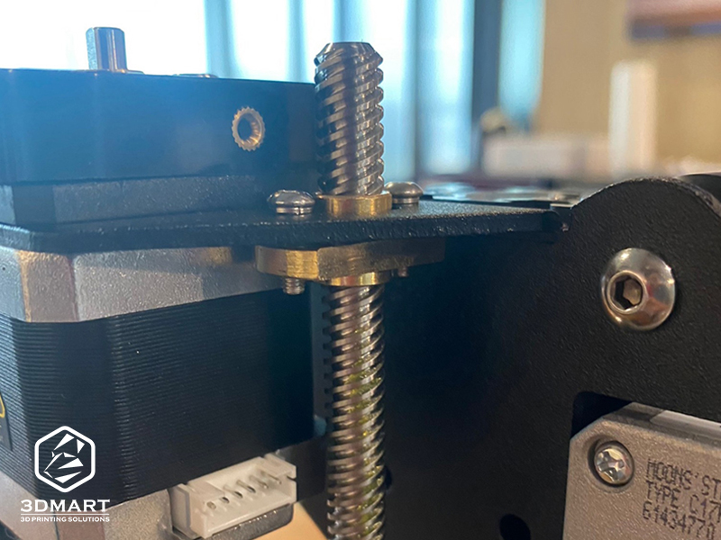 將T型螺絲桿組裝於Z軸電機(jī)零件後,使用工具將螺絲鎖緊。