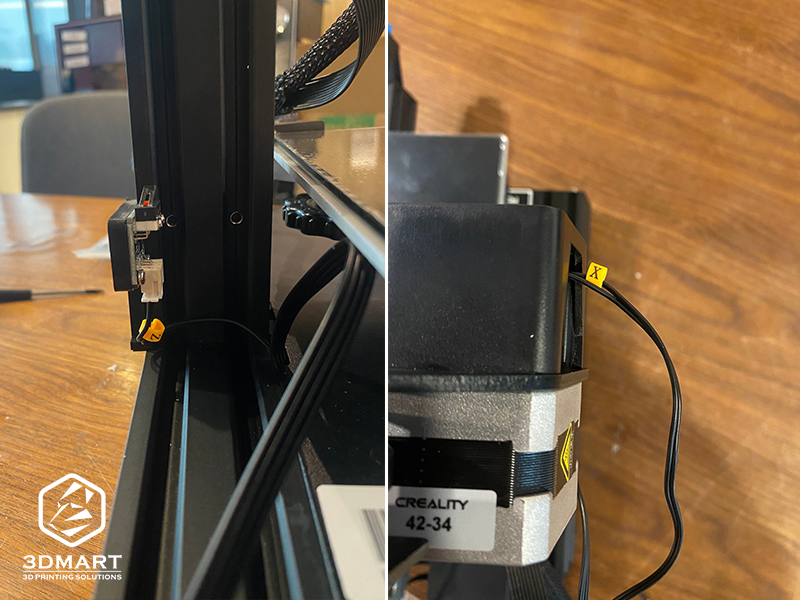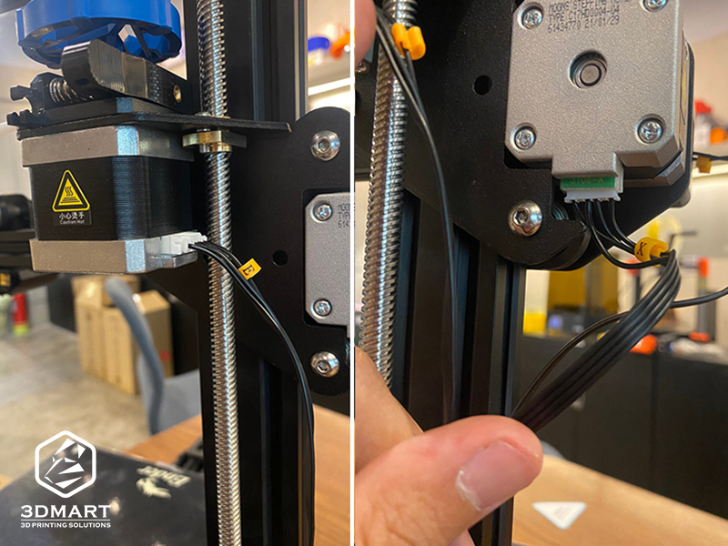 依照6pin(四根線)端口上的黃色標(biāo)籤指示,連接X、E、Z軸接線插入電機(jī)零件中。