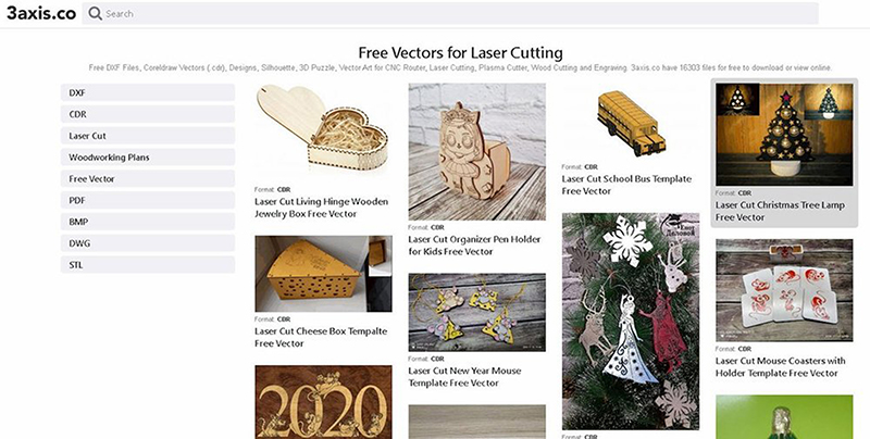 3axis.co是專門為雷射切割/雕刻技術(shù)所提供的免費(fèi)資料庫,有各種完成品的外觀預(yù)覽,針對木工設(shè)計分享一系列檔案,從吊燈、收納盒、鞋櫃、椅子、飾品,可以下載DXF、DWG、CDR或BMP等多種格式的免費(fèi)雷射切割設(shè)計,有超過16,000個檔案,並且不斷更新內(nèi)容。(點我前往)