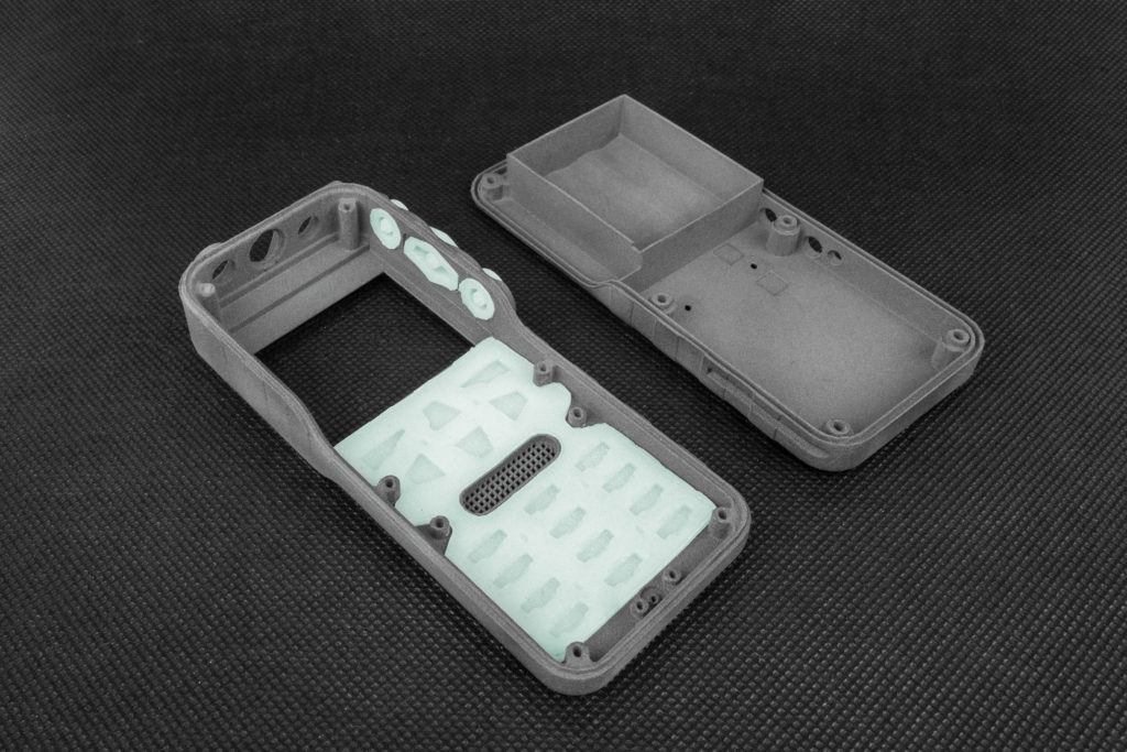 除了對(duì)講機(jī)主體使用PA12尼龍粉末列印,配件如TPU天線及彈性矽膠按鈕也使用Sinterit Lisa 3D列印機(jī)開(kāi)發(fā)原型。所有零件以開(kāi)模製作將花費(fèi)超過(guò)四萬(wàn)美元,比起一次性的費(fèi)用,設(shè)計(jì)師選擇投資SLS 3D列印機(jī)設(shè)備;不但省下75%的花費(fèi),還能用於後續(xù)的其他專(zhuān)案。以往該公司外包製作的專(zhuān)案平均需等待幾週並花費(fèi)八千美元以上,這次設(shè)計(jì)師決定嘗試內(nèi)部開(kāi)發(fā),整個(gè)過(guò)程耗時(shí)兩天、費(fèi)用不到兩百美元。由於3D列印的品質(zhì)精良,設(shè)計(jì)原型可以提供客戶測(cè)試確認(rèn),定案後才製作量產(chǎn)模具。