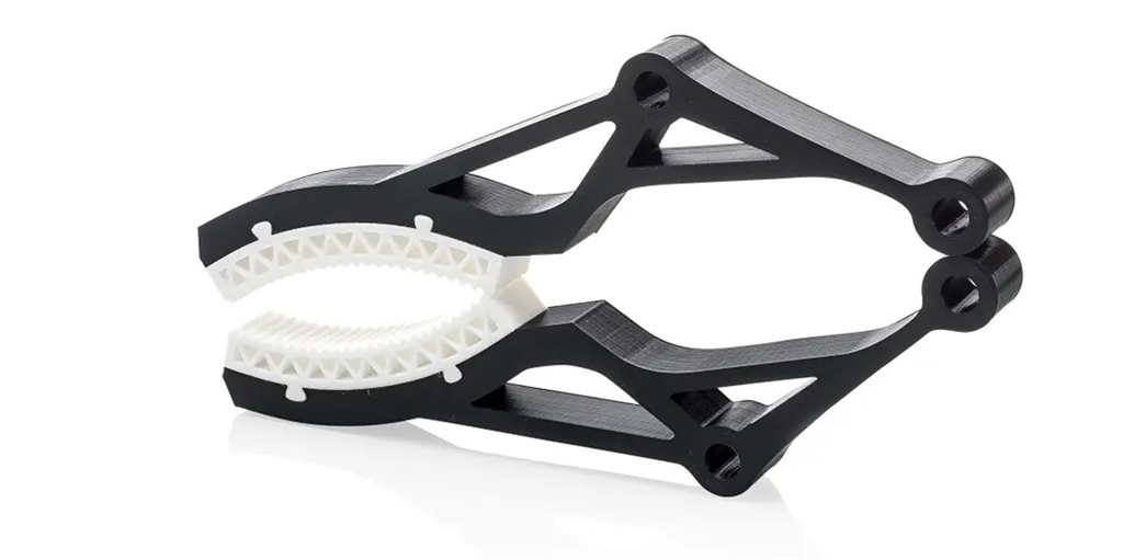 工業(yè)用的3D列印零件需要長時間承受壓力、撞擊,同時也必須保護(hù)輸送、加工的產(chǎn)品;以夾具為例,需要有堅固耐用的結(jié)構(gòu)、附有彈性的內(nèi)層,來達(dá)到最好的機(jī)械功能性,以雙噴頭3D列印來同時列印兩種材料,不但節(jié)省成本、單次列印即可完成!