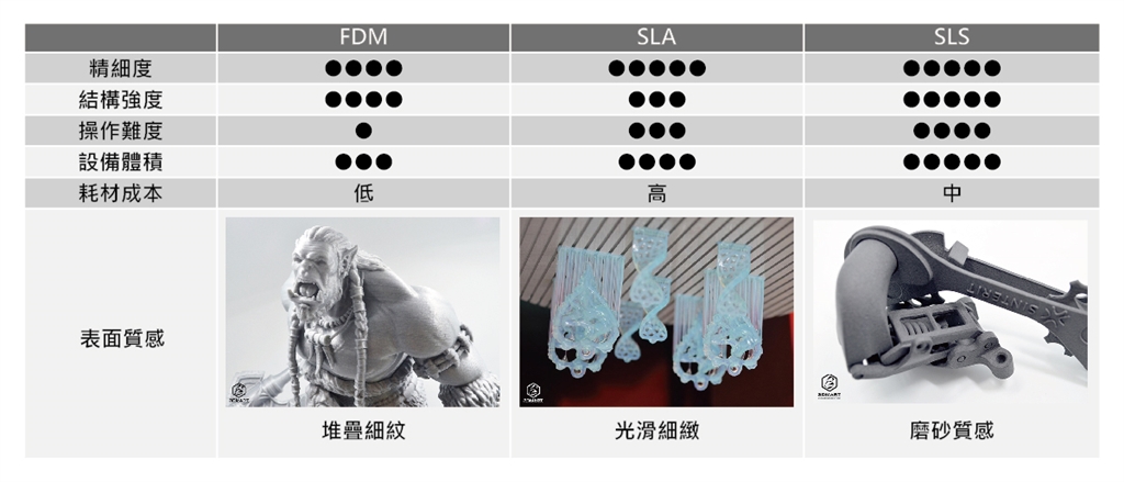 .FDM 熱融堆疊技術(shù)經(jīng)濟(jì)實(shí)惠因此最為常見,由於體積較小且操作容易,一般中小企業(yè)也能快速上手,同時(shí)只需要最少的後加工和廢料處理。