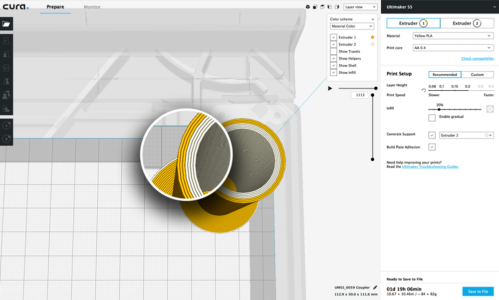 Ultimaker Cura 3.5挾帶最新功能和極佳切片性能,適用Windows、MacOS和Linux。快看新版本有哪些快狠準的3D列印體驗? 快速導(dǎo)覽Ultimaker Cura 3.5有什麼新功能? .快速鍵 使用快速鍵切換模型操作工具,以獲得更好的用戶體驗 .監(jiān)控畫面 重新設(shè)計的Ultimaker Cura監(jiān)控畫面,以便與Cura Connect更加一致。 .3MF檔案格式 不再使用「curaproject」擴增程序,所有Ultimaker Cura檔案現(xiàn)在都能以3MF格式保存,能與其他3D軟體更相容。 新的使用者體驗 .檔案選單:我們已經(jīng)改變了檔案選單的形式;「保存」為現(xiàn)在儲存該檔案,「匯出」則是將模型保存為另一種檔案格式。 .新工具快速鍵:已指定快速鍵用於平移(T)、縮放(S)、旋轉(zhuǎn)(R)和鏡像(M)工具之間的快速切換。 .開啟最近的項目:現(xiàn)在可以在「開啟最近…」選單中找到您最近一次的檔案以及常用模型。 .材料偏好:現(xiàn)在可以將材料設(shè)置到資料夾,因此可以在右上角的材料選單面板中快速的找到它。 .監(jiān)控頁面:Ultimaker Cura的監(jiān)控頁面經(jīng)過改良設(shè)計,與Cura Connect的「列印作業(yè)」界面更加一致;減少轉(zhuǎn)換的銜接時間,強化Ultimaker Cura內(nèi)部的控制性。 .保存項目:保存項目不再重新切片,是需要長時間切片檔案的理想選擇! .切片增強功能 改善垂直建構(gòu)面處理:自動檢測垂直建構(gòu)面並以不同的速度列印,並且不會在懸空的部份開始列印。以不同的速度列印不同的建構(gòu)面可以提供更高品質(zhì)和穩(wěn)定的成品。 .最小多邊形周長 周長小於設(shè)定值的切片層多邊形會被過濾掉,數(shù)值愈小愈能創(chuàng)造高分辨率的結(jié)果,但會增加切片時間;這個設(shè)定適用於具有大量細節(jié)的小規(guī)模列印或SLA列印機。 .設(shè)定底層支撐密度 該設(shè)定能夠增減底層支撐材的密度,以調(diào)整對加熱板的附著力和整體強度。 .額外的填充建構(gòu)面 這會在填充區(qū)域周圍增加額外的垂直建構(gòu)面,這有助於支撐頂部/底部的表面線條以減少下垂。讓您減少頂部或底部表層列印也能獲得相同品質(zhì),但需要消耗一些額外的材料。 .穩(wěn)固主體 使用兩種不易黏附的材料進行列印可能會導(dǎo)致主體列印失敗,因此我們重新利用主體來生成一種材料的外殼並作為第二種材料的附著空間,測試後比以前更堅固穩(wěn)定。 .多次填充 在同一個圖面上生成多個填充線讓主體更堅固。 .連接填充的多邊形 與連接填充線類似,現(xiàn)在可以將同一層的多邊形支撐連接在一起;此功能可與「多次填充」和「額外填充」結(jié)合使用,以確保任何填充圖案的連續(xù)模式。 .風(fēng)扇速度覆蓋。 在「支撐設(shè)定」選單中的「風(fēng)扇速度覆蓋」下,添加了一個新設(shè)定來修改橋接區(qū)域的風(fēng)扇速度,這僅在使用支撐材料的時候有效。 .最小壁厚 「外殼」類別中添加了一個新設(shè)定,用於定義薄殼列印面的最小值。 .支撐填充線方向 現(xiàn)在可以旋轉(zhuǎn)支撐填充線以增加支撐功能並減少模型上的瑕疵,這個設(shè)定可旋轉(zhuǎn)現(xiàn)有圖案:例如三角形支撐填充。 新的外掛程式 .Cura設(shè)置指南 一個詳細、可搜索的Cura索引,包含圖像以供參考。 .自訂支撐 停止自動生成支撐的工具,透過選取部分來手動添加想要的支撐部分。 .快速切換自動切片 添加切換按鈕以快速啟用/禁用自動切片。 .標題欄中的版本 在應(yīng)用程序標題欄中顯示版本以便快速參考。 .支援外部列印機 為TiZYX、Winbo、Tevo Tornado、Creality CR-10S和Wanhao Duplicator添加了新的預(yù)設(shè)文件。 Deltacomb和Dacoma的設(shè)定也已經(jīng)更新。 .錯誤修復(fù) 為了獲得更好的穩(wěn)定性和性能,我們在此版本中修復(fù)了各種錯誤。這包括刪除GCODE中多餘的M109命令和不必要的動作,改善額外的表面建構(gòu)數(shù)量和列印模型的順序等等。 感謝smartavionics、fieldOfView、BagelOrb、Kriechi、MarmaladeForMeat和cubic的貢獻。我們還要特別感謝所有幫助我們?yōu)榇税姹咎峁┳罴延脩趔w驗的測試人員。 更棒的是,這是免費的!立即免費下載Ultimaker Cura最新版,或者逛逛我們的其他頁面了解3D列印的資訊及最新消息。 所有最新資訊會優(yōu)先公布於粉絲專頁,歡迎追蹤我們讓您持續(xù)獲得新資訊。 粉絲專頁:https://www.facebook.com/www.jinshanghunli.com/ 原文連結(jié):https://ultimaker.com/en/blog/52726-new-3d-printing-features-ultimaker-cura-35-is-here?utm_campaign=coschedule&utm_source=facebook_page&utm_medium=Ultimaker&utm_content=New%203D%20printing%20features:%20Ultimaker%20Cura%203.5%20is%20here%20|%20Ultimaker