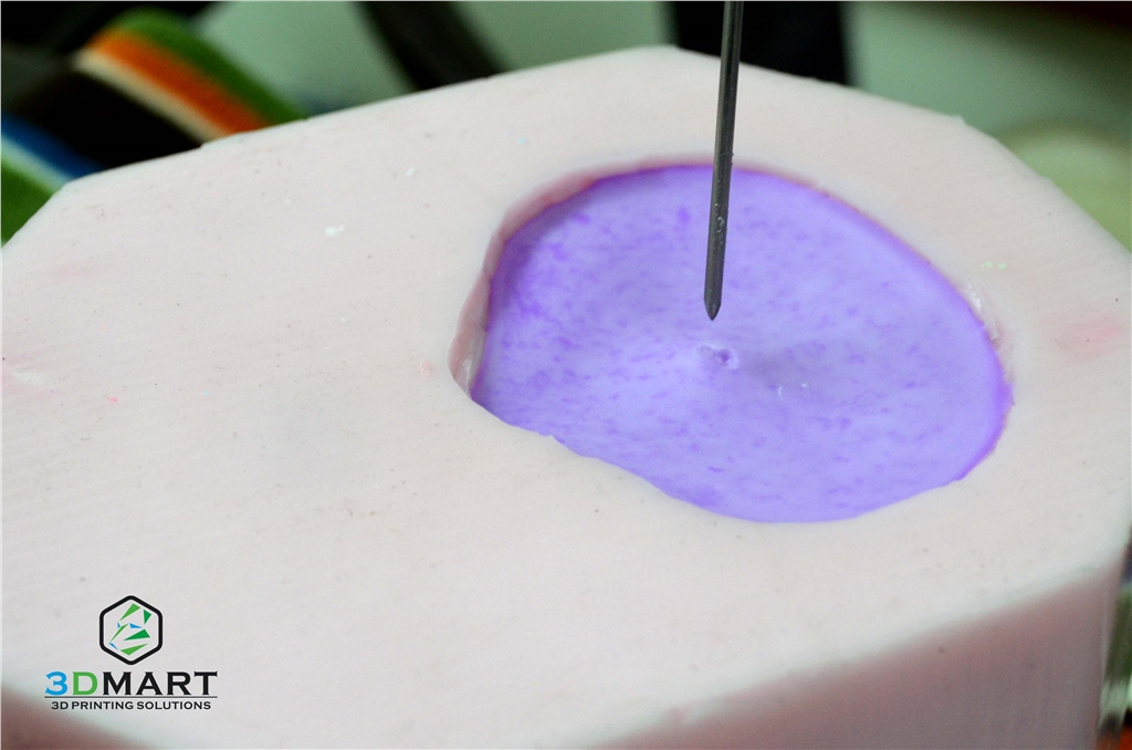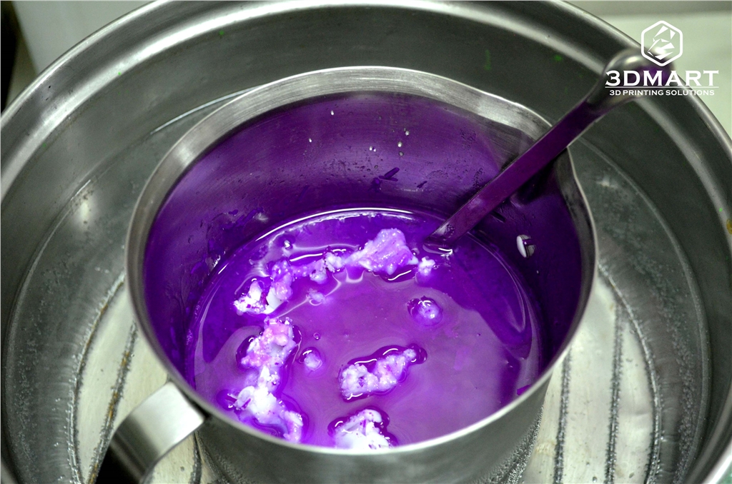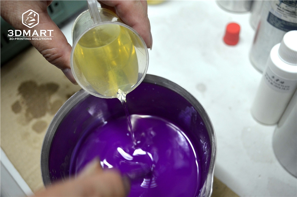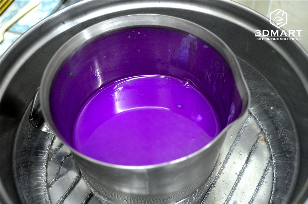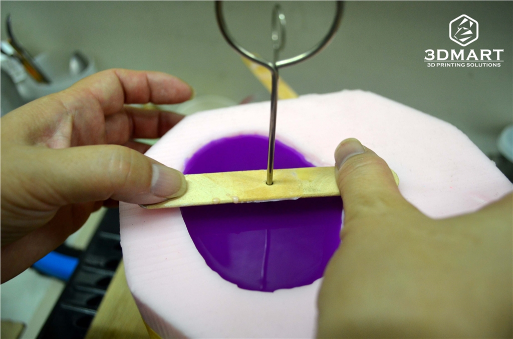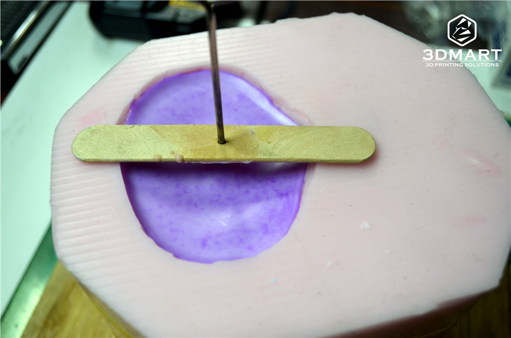 (1)準(zhǔn)備了約3kgs的矽膠                                 (2)利用瓦楞塑膠板圍住模型                                 (3)將矽膠緩慢地倒入模具中同時(shí)加入硬化劑