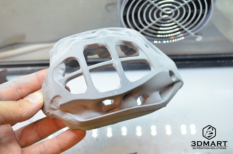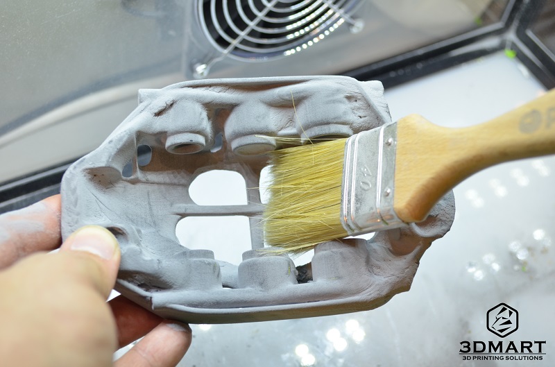 【3D列印快訊】SLS粉末燒結3D列印成品分享 最新引進的這臺顯眼亮紅色的Sinterit Lisa SLS 3D列印機,讓辦公室的同事們都心癢癢的想來列印一些玩意兒, 來看看效果,這次我們再次3D列印了一些樣品。 剛列印完成的煞車卡箝模型,從SLS 3D印表機中拿出來會是一大塊灰色粉塊狀,將旁邊多餘的粉末清開後就能看到 煞車卡箝模型,先用小刷子稍微幫不需要的粉末散開,再放進噴砂機內使用空壓機進行更完整的清潔。 如同古蹟剛出土的模樣 這次列印的煞車卡箝模型使用的材質是PA12 光滑準備粉末,層厚設為0.075mm,總量為88.02立方公分,列印時間 約為39小時。 用刷子做簡單清潔 最後完成的煞車卡箝模型(正面) 最後完成的煞車卡箝模型(反面) 我們這次一樣也列印許多不同的3D列印模型,基於SLS 3D列印機的特性,模型可以堆疊再一起進行列印,如圖中 擺放的方式讓人可以列印至少10幾種不同的物件,這一切都取決於你擺模型的方式。 這次列印的其他兩個小模型,列印的品質都十分完美,重點是他再也不用拆支撐了!!!! 所以我們要做的後處理很簡單,只需將多餘粉末清理,就能有完美的3D列印成品囉,超級方便的吧! 最後附上煞車卡箝3D檔案載點: https://grabcad.com/library/generative-design-f1-brake-caliper-1 有興趣的可以自行下載唷!