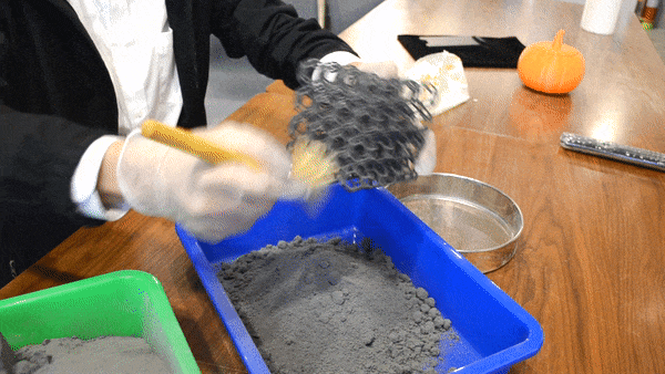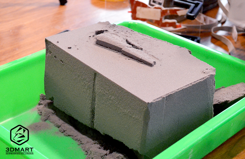 右邊的列印平臺(tái)無須填入粉末,會(huì)在機(jī)器封閉進(jìn)行3D列印時(shí)會(huì)透過左邊的進(jìn)粉槽逐層覆蓋;填充完成後,只要按照Sinterit Lisa的指示步驟開始列印就會(huì)自動(dòng)完成囉!完成並開啟後,3D列印粉末及成品都會(huì)跑到右邊的列印平臺(tái),平臺(tái)會(huì)將列印完成的粉末塊推升,用專用刮勺整塊剷起即可。