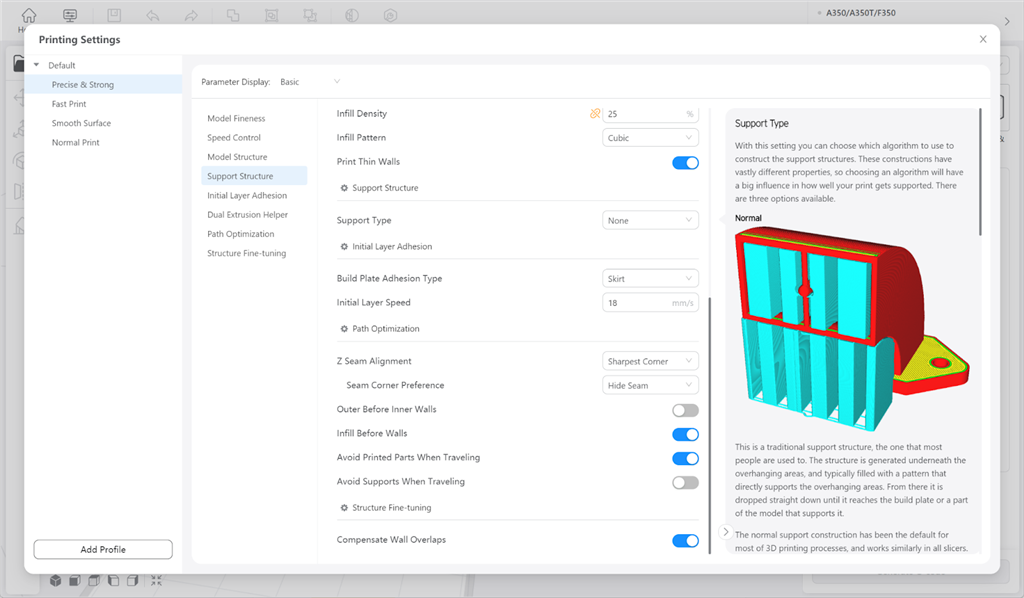 .支撐結(jié)構(gòu):多密度支撐,樹狀支撐,支撐偏好