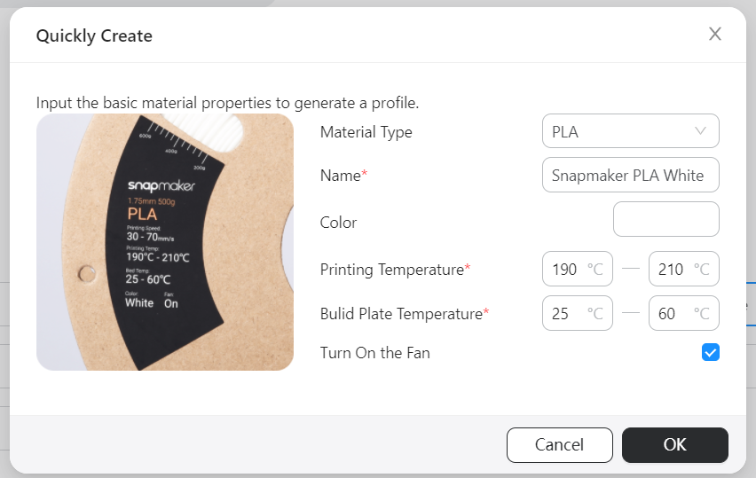 3D列印線材特性很多方面是不同,有鑑於此,新版可以輸入基本的線材屬性,為某些線材設(shè)置一個(gè)參數(shù)文件,下次再使用相同的線材時(shí)可以直接選擇自定義的參數(shù)配置文件。
