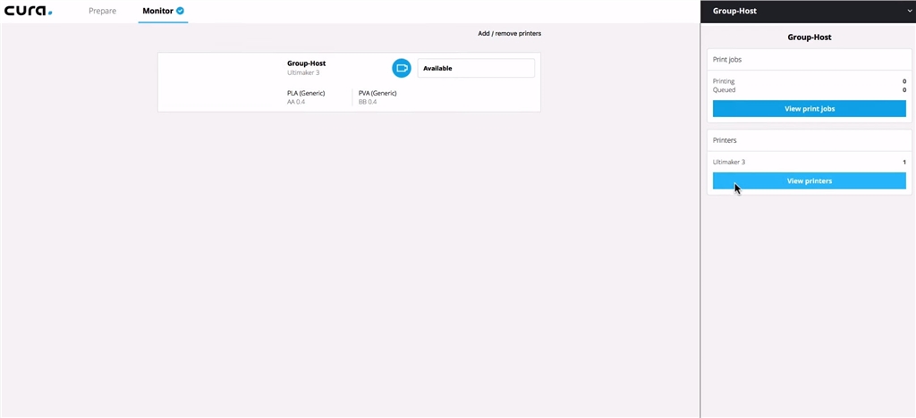 1. 在「Monitor」模式中選擇右邊選單中的「View printers」。