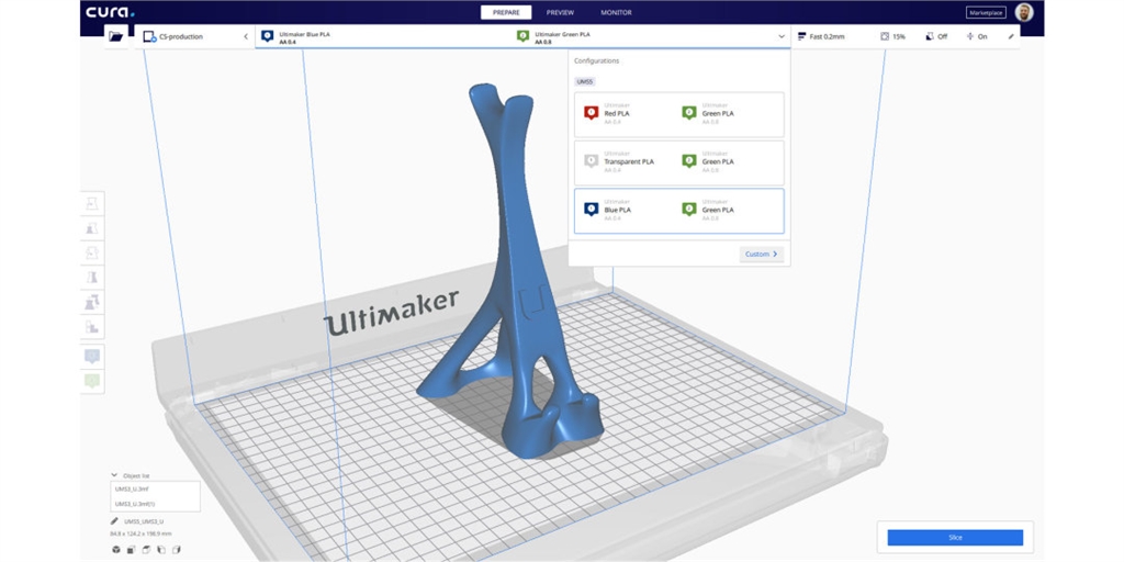 在新版Cura 4.3中能使用比之前更多的檔案格式,直接將CAD圖檔、3D掃描和3D模型檔集成到您的工作流程中,例如:Collada、GLTF、OpenCTM和PLY…等,還能從「Marketplace」下載更多外掛支援。
