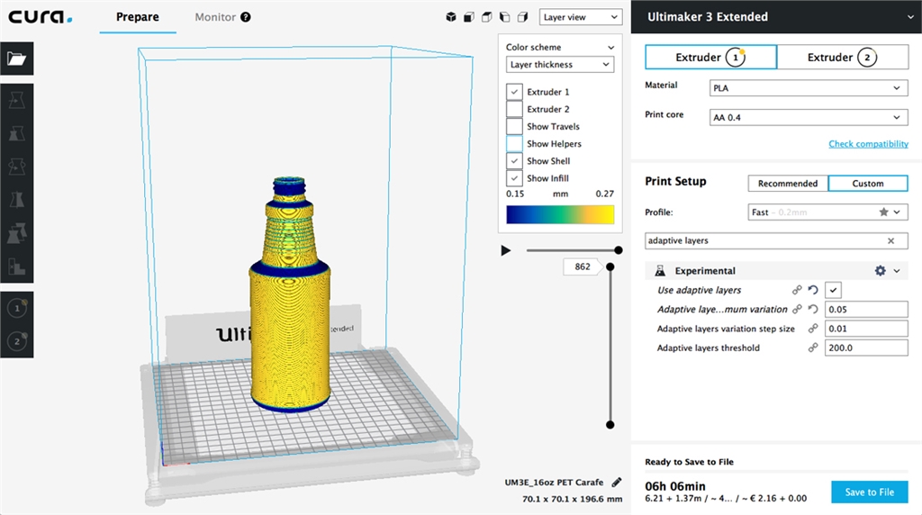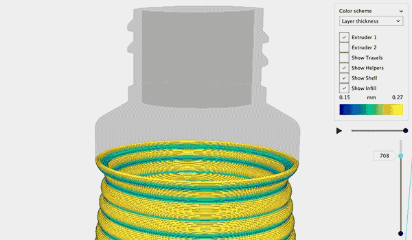 【3D列印軟體】用Ultimaker Cura的自適應(yīng)層功能快速列印 正如多數(shù)人知道的那樣,Ultimaker 3D列印機(jī)使用融合沉積建模(或FDM)來製造物理物件。 這個(gè)過程是通過將一個(gè)數(shù)位模型切片成一堆水平層,借助Ultimaker Cura等切片軟體。 讓圖層依次列印在一起,形成一個(gè)物理物件。 質(zhì)量與速度 多數(shù)切片軟體將每個(gè)圖層間分配一個(gè)不變的間距(稱為圖層高度)。 非常精細(xì)的圖層高度會產(chǎn)生高解析度模型,但每個(gè)額外圖層都會增加列印過程的時(shí)間。較厚的圖層高度會列印得更 快 - 因?yàn)榱杏〉膱D層較少 - 但完成後的模型細(xì)節(jié)程度會降低。這些情況讓用戶處於必須選擇的位置,以優(yōu)化列印的 時(shí)間或列印品質(zhì)。 如果你能擁有兩全其美的世界 – 讓你的列印圖層高度能自己適應(yīng)物體的形狀呢? 自適應(yīng)層,自Ultimaker Cura 3.2以來可用的新切片特色使這些成為可能。 在產(chǎn)品開發(fā)中應(yīng)用自適應(yīng)層 這在實(shí)踐中意味著什麼? Poly-Tainer Inc.是一家塑膠瓶製造商和裝飾商,生產(chǎn)使用於健康和美容市 場產(chǎn)品的容器。為加快3D CAD設(shè)計(jì)實(shí)施流程,他們投資兩臺用於內(nèi)部原型設(shè)計(jì)的Ultimaker 3 Extended列印機(jī)。 藉由3D列印技術(shù),Poly-Tainer能夠與他們的客戶(通常是Target和Walmart等主要零售商)共享準(zhǔn)確的概念模型, 並在投入高達(dá)100,000美元大量生產(chǎn)模具之前消除設(shè)計(jì)中的不確定性。 在Ultimaker Cura中使用「快速」切片檔案的瓶子原型。 層厚持續(xù)維持在0.2mm(200micron)。 使用自適應(yīng)層切片的瓶子原型。 列印時(shí)間減少了10%,並且對需要它的區(qū)域給予更多細(xì)節(jié)。 最終產(chǎn)品在貨架上的外觀是販?zhǔn)圻^程的重要考慮因素。使用自適應(yīng)圖層,Poly-Tainer可以在比具有不變圖層高度的 模型在更少的時(shí)間內(nèi)列印出具改進(jìn)外觀和品質(zhì)的細(xì)節(jié)概念模型。 模型的角度部分每層都具有更精細(xì)的步驟,重要的設(shè)計(jì)元素(例如瓶子頸部的線跡)具更好的細(xì)節(jié)。 使用Ultimaker Cura圖層視圖中包含的層厚顏色方案,可以顯示層厚的變化。 在這個(gè)例子中,較厚層是黃色的, 較精細(xì)層是藍(lán)色的。 Ultimaker 3的雙重?cái)D出功能可以使用可溶解的PVA支撐材料,有助於實(shí)現(xiàn)設(shè)計(jì)特徵,例如「底部提高」,這是製造 瓶子中的重要設(shè)計(jì)元素。 與恆定層高度相比,使用自適應(yīng)層和可溶解PVA支撐能更快速的創(chuàng)造此概念模型,而且具 有定義明確的裝飾斜面,增加的細(xì)節(jié)助也幫助裝飾瓶子過程時(shí)提供的精準(zhǔn)的多色網(wǎng)狀列印。 底部提高是保健和美容產(chǎn)品容器的理想特徵。 此功能的水平橫截面顯示藍(lán)色的支撐結(jié)構(gòu)。 列印完成後, 支撐材料可以更容易的溶解在自來水中。 精準(zhǔn)的3D列印概念模型使Poly-Tainer能夠在生產(chǎn)工具創(chuàng)造第一個(gè)產(chǎn)品之前訂購訂製的裝飾工具。 這讓新設(shè)計(jì)推向市 場的時(shí)間節(jié)省了約4-6星期的時(shí)間。 自適應(yīng)層如何優(yōu)化速度和細(xì)節(jié) Ultimaker Cura的自適應(yīng)圖層功能可分析模型外壁的傾斜角度。 切片引擎會優(yōu)化每個(gè)部分的層厚。 曲線以更精細(xì) 的圖層分析率列印,而垂直平坦區(qū)域則列印更厚的圖層,縮短列印時(shí)間。 計(jì)算方式是自動的,用戶可以指定的三個(gè) 參數(shù):最大變化量,變化步長和層閾值。 預(yù)設(shè)參數(shù)通常就足以提供良好的結(jié)果,但可以進(jìn)行測試以進(jìn)一步優(yōu)化用戶 特定模型的列印時(shí)間,同時(shí)仍保留精細(xì)細(xì)節(jié)。 免費(fèi)可使用的切片軟體 Ultimaker Cura完全免費(fèi)提供給用戶。 您可以通過將此樣本.STL檔案載入到Ultimaker Cura 3.2或更高版本來嘗試 此功能。通過切換到自定義模式並在搜尋欄位中搜索「自適應(yīng)圖層」,從Ultimaker Cura的界面中訪問自適應(yīng)圖層 的設(shè)置。我們一直喜歡聽Ultimaker如何幫助人們簡化業(yè)務(wù)流程。 你認(rèn)為哪些功能對你的工作流程最重要? 歡迎在我們的3D列印專家社群中分享您的想法。 特別感謝Poly-Tainer Inc.的Frank Cowles。 原文連結(jié):https://ultimaker.com/en/blog/52520-print-detailed-objects-faster-using-adaptive-layers-in-ultimaker-cura