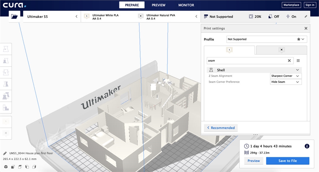 使用Ultimaker Cura中的「推薦模式」,內(nèi)有可直接進(jìn)行3D列印的參數(shù)預(yù)設(shè)值;「完全控制狂」也可以在「自定義模式」調(diào)整所有設(shè)定,共可享受300多項個人化調(diào)整。