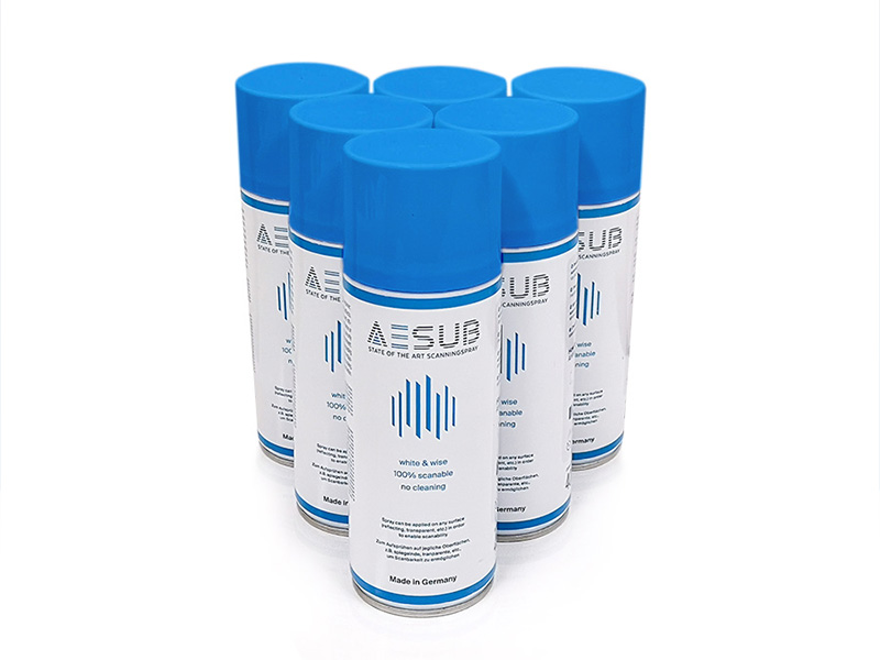 The thickness ranges of AESUB Sublimating 3D Scanning Powder Blue is from 5 to 15µm, it can evaporate automatically. Dusting powder does not contain pigment and will not damage objects. It can be thin and evenly distributed on the surface of scanned objects. There is no need to clean after scanning, effectively saving time, cost and improving work efficiency. Objects that are transparent and reflective can be easily 3D scanning.