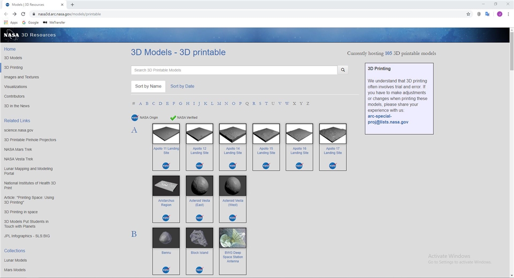 這是NASA設(shè)立的3D列印模型網(wǎng)站,上面充滿各式各樣與太空探索相關(guān)的圖檔,從氣象到星球表面,甚至衛(wèi)星、地標(biāo)物的模型都有。這些皆可用於3D列印,除了滿足大家對(duì)於太空的好奇與想像,還能讓你擁有浩瀚宇宙的實(shí)體模型!