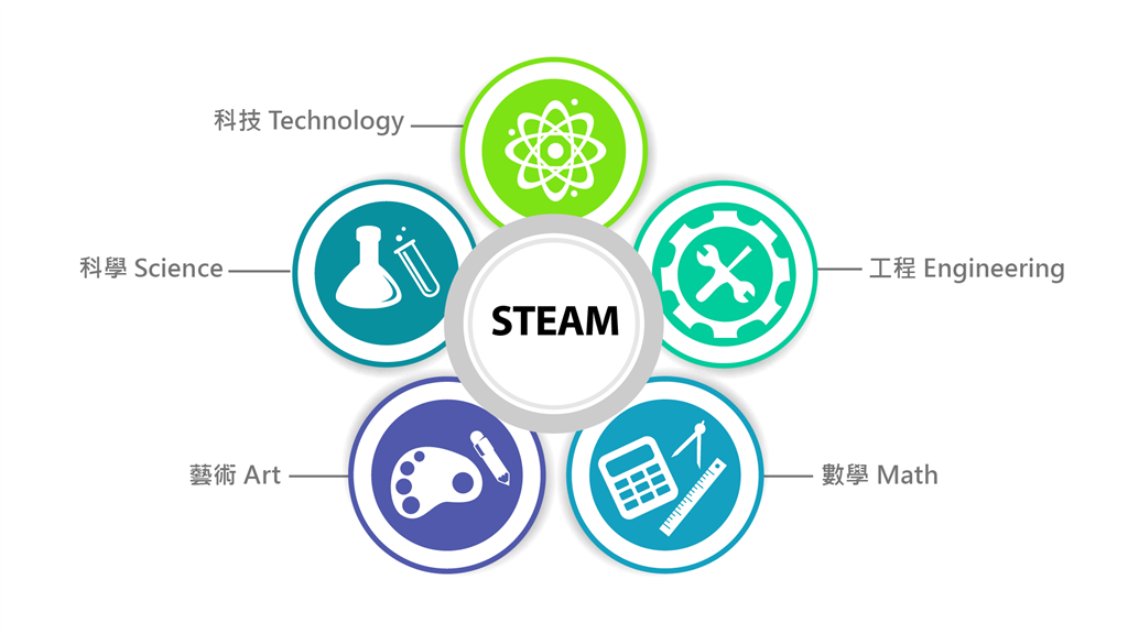 「STEAM」起源於美國的教育改革,起初只有「科學(xué)(Science)」、「科技(Technology)」、?工程(Engineering)」、「數(shù)學(xué)(Math)」四個(gè)元素,後來加入「藝術(shù)(Art)」成為五個(gè)主要元素。這些主題與教育相互結(jié)合,藉以培養(yǎng)技術(shù)應(yīng)用與解決問題的能力,是未來世界中必須具備的競爭力。