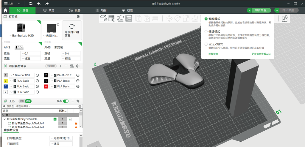 應(yīng)對(duì) H2D 的多材料列印功能,您可以簡(jiǎn)單的在 Bambu Studio 切片軟體上最佳地利用您可用的線(xiàn)材。