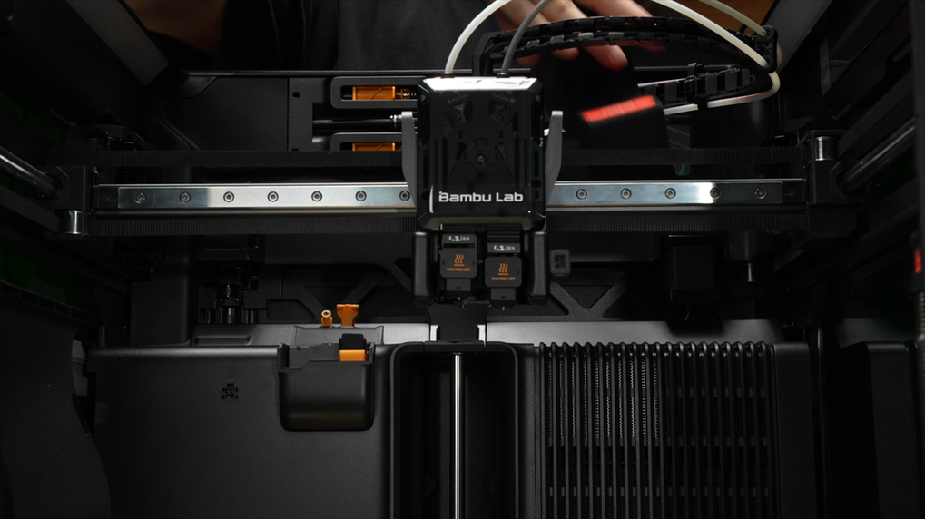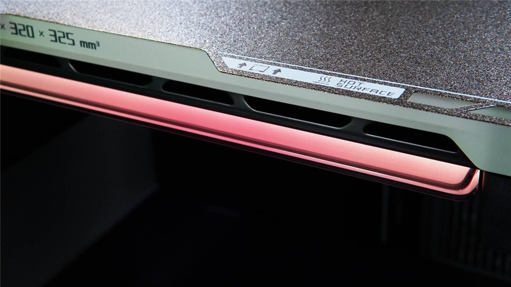 雙擠出機(jī)的兩個(gè)熱端並排放在一個(gè)列印頭中,每個(gè)熱端都可以連接到 AMS,並以高速在 350 x 320 毫米的超大列印區(qū)域內(nèi)旋轉(zhuǎn)。