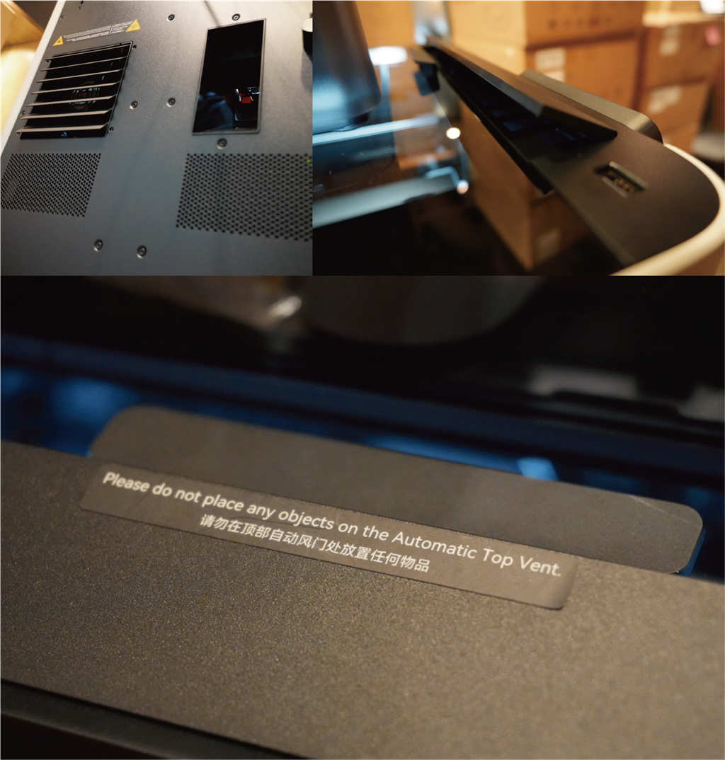 在機(jī)身後方以及機(jī)身頂部的通風(fēng)口,在進(jìn)行列印時(shí)會(huì)自動(dòng)開(kāi)啟,有效進(jìn)行溫度與空氣控制。