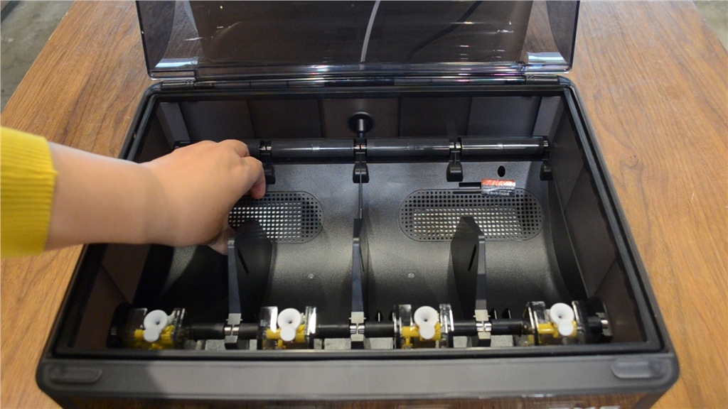 撕掉AMS所有的包膜,打開AMS蓋子,將存放乾燥劑的蓋子打開,撕開乾燥劑的包裝,再放回去即可。