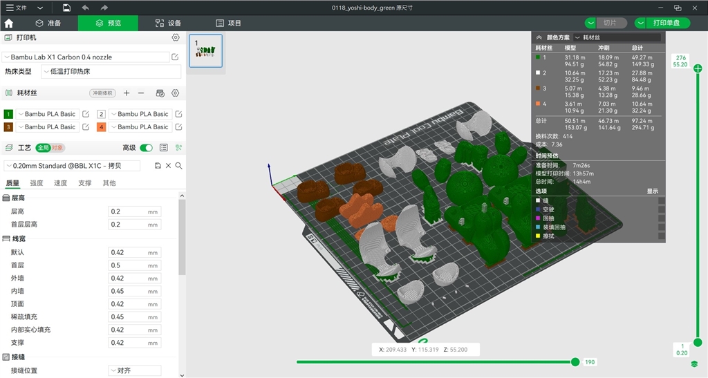 這次列印是瑪利歐的遊戲人物,預(yù)計大概花了8小時左右,自動換色超方便,Bambulab X1 Carbon列印速度令人驚艷!加速度500m/s,而且列印尺寸256×256×256 mm,可以一次擺很多物件同時印,完全不浪費太多時間!