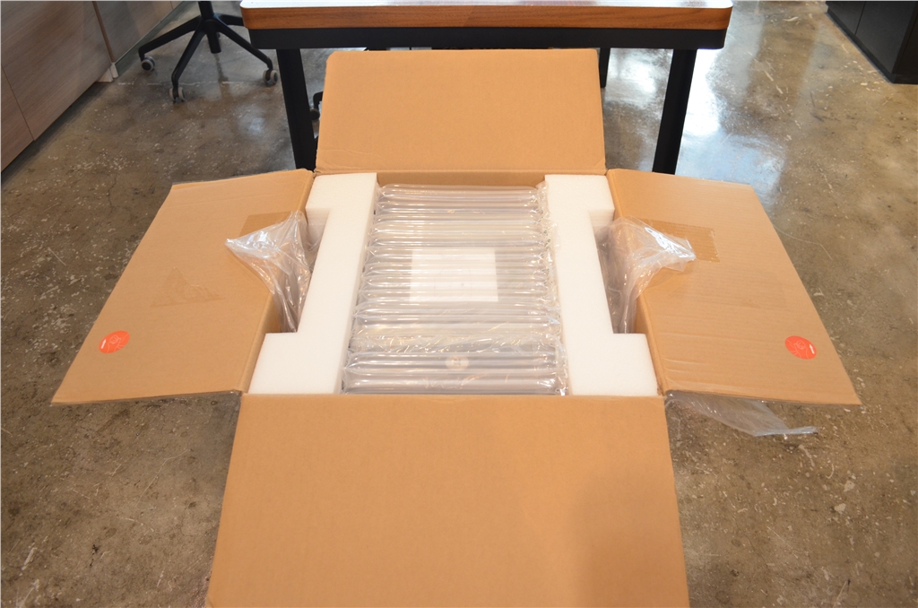 開箱時,將兩個泡棉拿起。箱子上有兩個箭頭,將兩邊塑膠外帶撕起,拉起兩邊即可將設(shè)備拉出外箱。