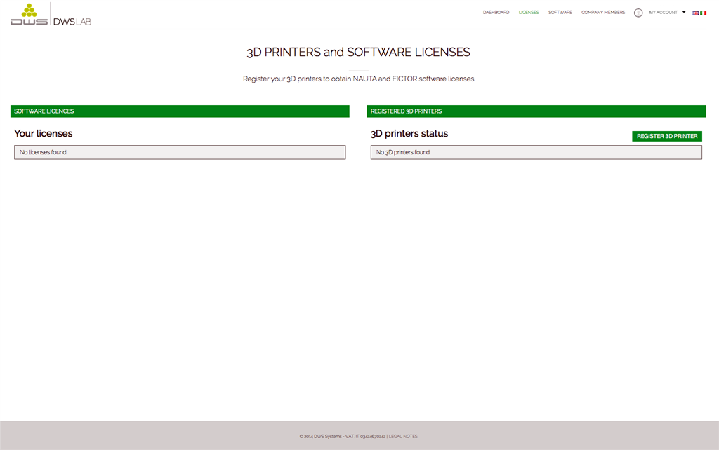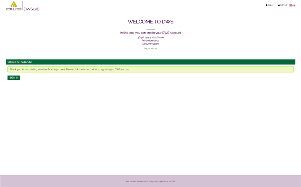 三、用戶註冊(cè) 1.前往customers.dwssystems.com頁面 2.點(diǎn)擊“Sign in”前往註冊(cè)頁面。 3.輸入所需的訊息,然後按照說明完成註冊(cè)。 4.打開註冊(cè)驗(yàn)證郵件,然後點(diǎn)擊驗(yàn)證連結(jié)。 5.點(diǎn)擊“Vertify”以完成註冊(cè)。 6.點(diǎn)擊“Sign in”。 7.輸入用戶名和密碼,然後點(diǎn)擊“Login”。 8.點(diǎn)擊“Register 3D printer”以註冊(cè)您的3D列印機(jī)。 9.在相對(duì)應(yīng)的框框中輸入序列號(hào)(位於列印機(jī)背面的名牌上)和列印機(jī)型號(hào),然後點(diǎn)擊“Save”。 10.如果打開列印機(jī),則可以通過點(diǎn)擊“Save”將列印機(jī)與註冊(cè)用戶斷開。