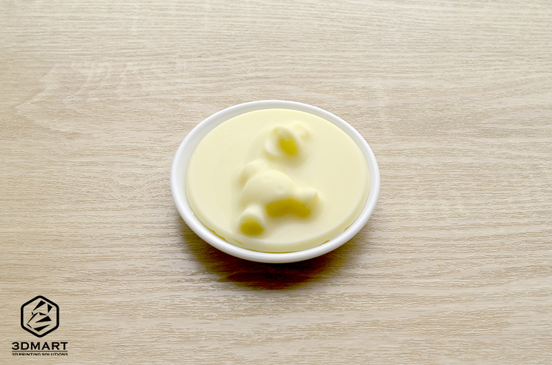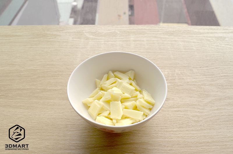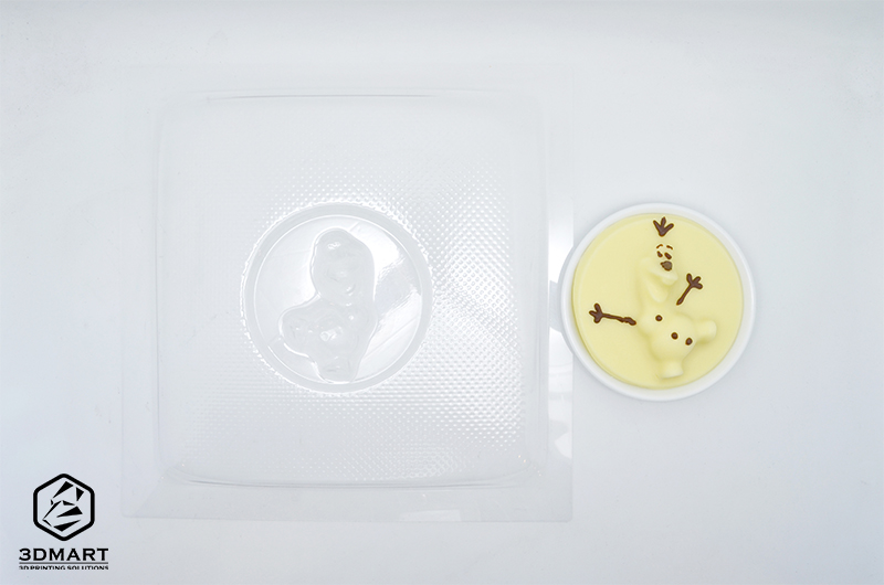 3.冷卻後將「雪寶」倒扣出來,白巧克力本體就已經(jīng)完成囉!由於FormBox原廠的透明材料片是食品安全的材質(zhì),因此可以用於製作巧克力、餅乾等模具,連英國的連鎖巧克力店都在用。(延伸閱讀:Paul A. Young巧克力連鎖店:真空模具這樣用!)
