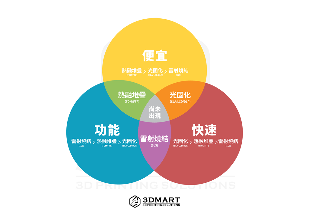 即使完全不了解3D列印技術(shù)的差別,只要知道大約有哪些選擇,並掌握自家物件的用途或外觀要求,就能大致判斷需要的方向,幫助快速選擇合適的應(yīng)用類別。以市面最常見的3D列印技術(shù)來說,可分為熱融堆疊(FFF/FDM)、光固化(SLA/LCD/DLP)、粉末燒結(jié)(SLS):