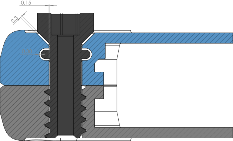 此款螺釘周圍帶有0.05-0.1mm的間隙,用以透過增加磨擦力的方式組合元件,如果想要將摩擦力降低,則可以透過加大間距的方式減少接觸面積。