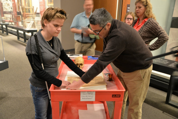 博物館可以提供觸覺材料給視障能夠體驗的機會(能夠讓無法參與博物館的參觀者用(觸摸)的感受歷史