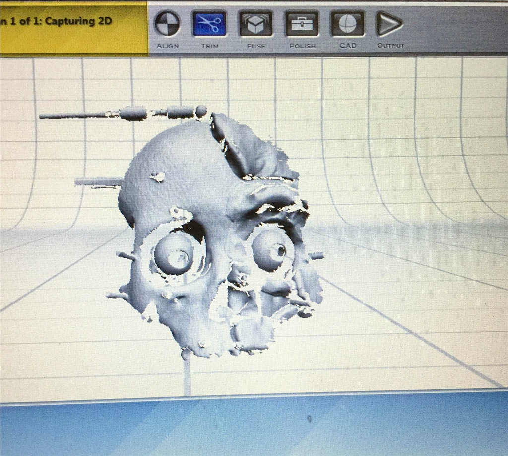 ◎編輯 在使用NextEngine掃描後,團隊使用3D掃描器的本機軟體(ScanStudio)來編輯模型,並將多個掃描組合到同一個模型中。 這個過程通常共需要兩次掃描。