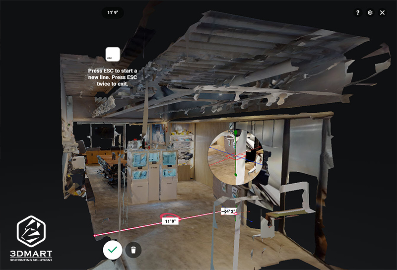 Matterport內(nèi)建的測量工具,可以在3D掃描完成後,使用滑鼠點擊任何牆壁、門、窗戶,系統(tǒng)會依照使用者選擇的範圍,自動顯示測量結果;室內(nèi)空間內(nèi)的各種尺寸大小都能一手掌握,買傢俱不用再怕尺寸不合。