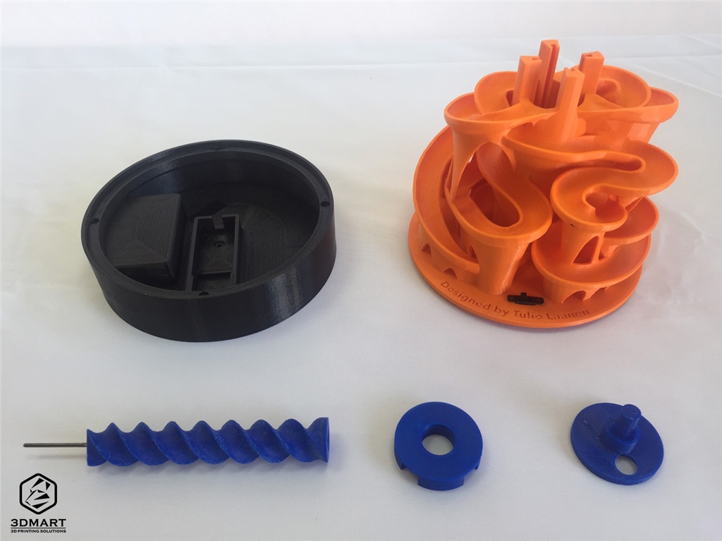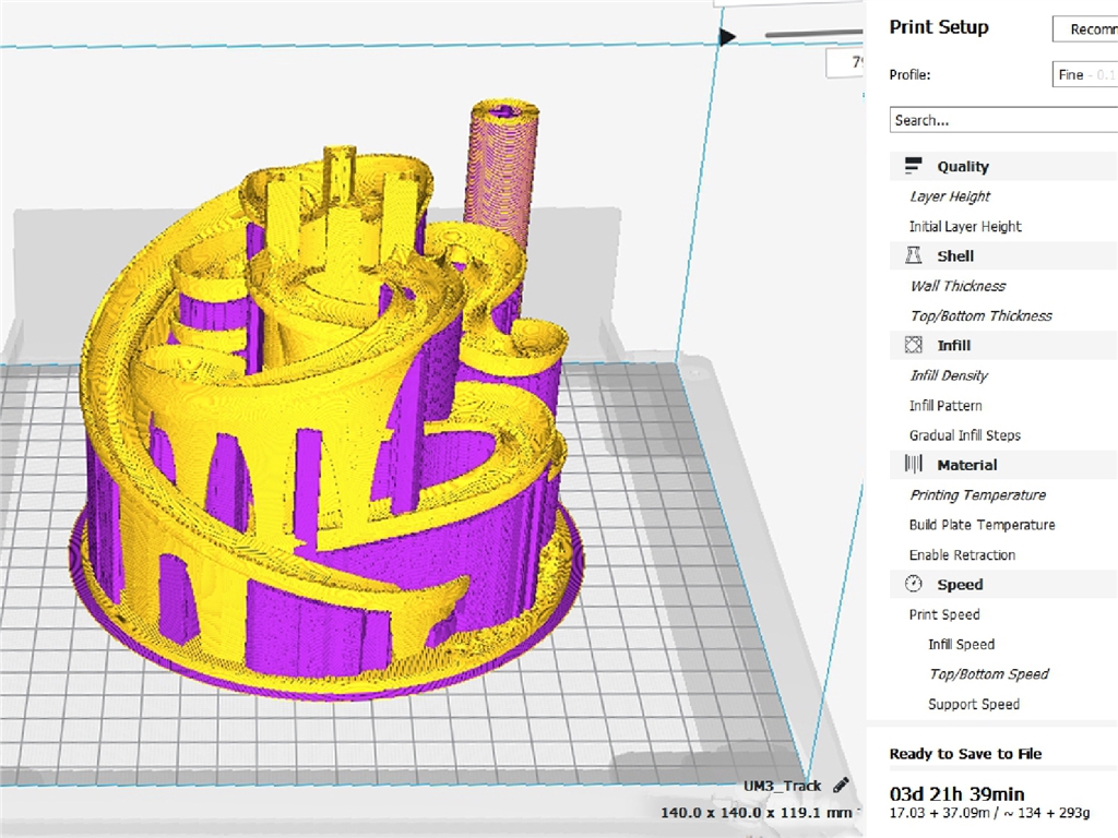 【3D列印應(yīng)用】2018 Tapei Cycle最新展品:自動彈珠雲(yún)霄飛車! 三帝瑪即將參加10/31~11/3的自行車展囉!提醒大家趕快手刀看展拿贈品!這次的展覽除了三種技術(shù)的3D列印機以外,又有什麼新奇的東西呢?趕快一起來看看! 小時候大家都看過一些軌道玩具,當年很想要又沒有零用錢?現(xiàn)在有了3D列印機,要什麼都能自己做,還可以挑戰(zhàn)客製化超複雜雲(yún)霄飛車軌道!根據(jù)這個原理需要具備哪些東西呢?軌道本體、可往上升的螺旋軸、螺轉(zhuǎn)軸操控盤,以及額外的神祕嘉賓──慢速馬達。我們先來看看手動的成果: 這是怎麼做的呢?首先把檔案丟進Cura中分析軌道本體,可以自動判斷與生成支撐材料、並計算列印時間;畫面上可以看到預估列印時間大約需要三天多,實際列印時間也幾乎沒有差距。 全新的Cura 3.5擴充許多新功能,我們實際測試也感覺更好用,不但支援Ultimaker 以外的機種、新增多種材料和偏好設(shè)定,而且是免費的!想了解更多軟體細節(jié),可以參考我們之前分享的Cura 3.5介紹文章。 經(jīng)過三天的3D列印終於完成雲(yún)霄飛車的軌道本體囉!這次使用的是Ultimaker 3 雙噴頭 3D列印機,並以主體PLA搭配PVA支撐列?。煌瓿舍嶂苯訉④壍辣倔w放入水中,PVA就會自動溶解。懶人最愛的後處理方式,早已成為我們工程師的新寵,讓你打樣也能優(yōu)雅下班、不趕單、免催件! 溶解支撐材料大約需要一天的時間,搭配水箱打氣筒速度更加倍!是不是很像水族箱裡的造景裝置呢? 將其他零件也3D列印完成後,將圖右下角的操控盤和中間的卡榫互相結(jié)合,裝上最左邊的螺旋軸;關(guān)鍵控制組件也大功告成。 組合起來的效果讓人很滿意,連小編都玩得很開心,多虧Ultimaker 的列印品質(zhì),我們連彈珠都採用3D列印,旋轉(zhuǎn)控制盤彈珠就會一直跑軌道喔! 完成了嗎?工程師們還不滿足,最後自行改裝了馬達,讓彈珠軌道可以無限自轉(zhuǎn)。彈珠雲(yún)霄飛車是小時候最想擁有的玩具,趕快3D列印一臺個人專屬的吧! 各位工程師或Maker都可以自行設(shè)計更複雜的軌道版本玩玩看,接上馬達後非常療癒。10/31~11/3直接來世貿(mào)三館G0358a攤位找我們玩,不但可以在展場上看到它為你轉(zhuǎn)轉(zhuǎn)轉(zhuǎn)不停的身影,還可以免費拿精美好禮喔!我們的位置: 貼心提醒大家週年慶優(yōu)惠活動即將開跑、稍縱即逝,敬請把握機會! .好康一:Ultimaker 3D列印機九折購! 凡於11/05(一)到11/16(五)期間;購買Ultimaker 3D列印機(此優(yōu)惠不適用於刷卡系統(tǒng),若有需求還請電洽),期間內(nèi)預付款全額付清,即可享有九折優(yōu)惠,Ultimaker同捆包內(nèi)的列印機也同享九折! .好康二:Ultimaker原廠線材買五送一! Ultimaker原廠線材大特惠,優(yōu)惠期間買五送一,最高現(xiàn)省2490元(價低者折扣)!讓你的3D列印穩(wěn)定、好用、不心疼,等很久了嗎?要買要快趁現(xiàn)在,數(shù)量有限送完為止。 .同場加映:看展購機再送Ultimaker PLA線材一捲! 三帝瑪將同步於10/31(三)~11/03(六)在Taipei Cycle自行車展世貿(mào)三館展出!凡於活動期間內(nèi)購買Ultimaker 3D列印機並造訪我們的攤位G0358a,即可再送您原廠PLA線材一捲。 最新消息都在我們的粉絲專頁,現(xiàn)在就追蹤、消息不漏接! 粉絲專頁:https://www.facebook.com/www.jinshanghunli.com/ 檔案來源:https://www.thingiverse.com/thing:1385312