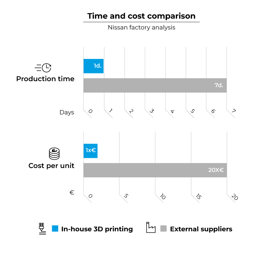 “增加附加值:產(chǎn)生低成本,但不產(chǎn)生高交付時間。我們很快就收回了投資。”- Enric Ridao,日產(chǎn)汽車巴塞隆納工廠的裝飾與底盤改善工程師。