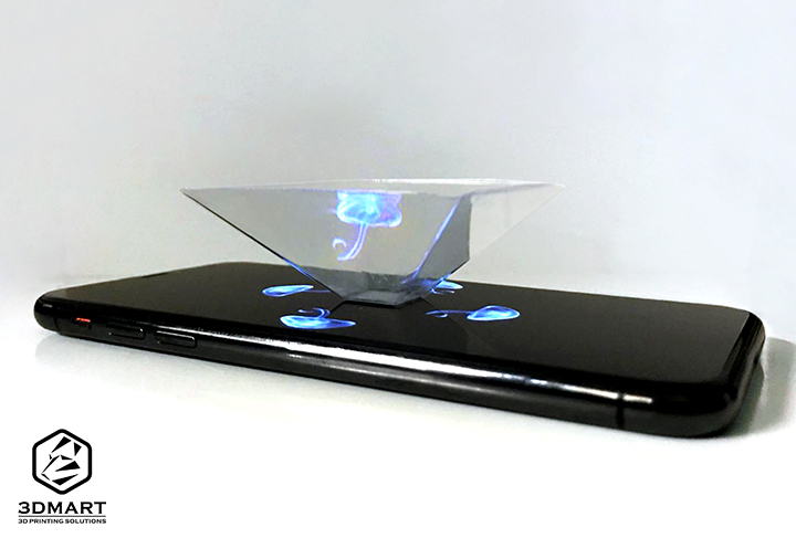 將這個(gè)四面體剪下,放在手機(jī)上就能自製出立體效果的「全息投影」,我們下載的立體水母有飄浮動(dòng)態(tài),第一次開箱就成功讓大家玩的不亦樂乎,各位也可以自己做一個(gè)試試看喔!