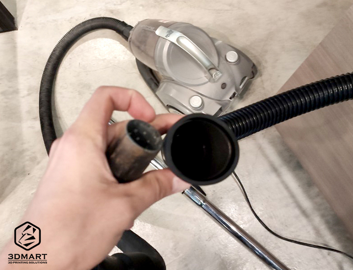 接下來就是串接吸塵器的部分了,首先我們隨便借了一臺(tái)小型吸塵器,將吸塵器前端的吸頭拆除。拿出剛才的黑色連接管,一端接上Mayku FormBox後方的圓形插孔中,橡皮塞塞入的時(shí)候應(yīng)該會(huì)感覺到一點(diǎn)阻力,完全塞緊可以確保完美的真空成型效果。