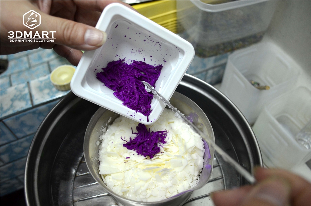 (4)將蜜蠟隔水加熱 (5)再放入你喜歡的蠟絲