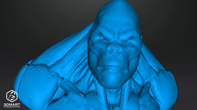 「EinScan SE」的掃描時(shí)間雖然較長,但不論是猩猩臉部的皺紋、耳朵深度、胸口盔甲零件、鎖骨凹凸…等,都有極為精細(xì)的效果。