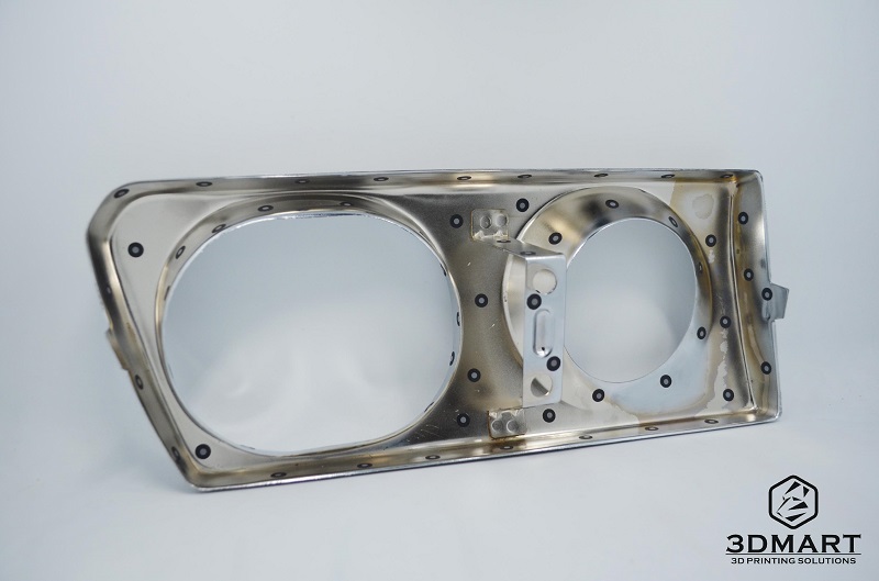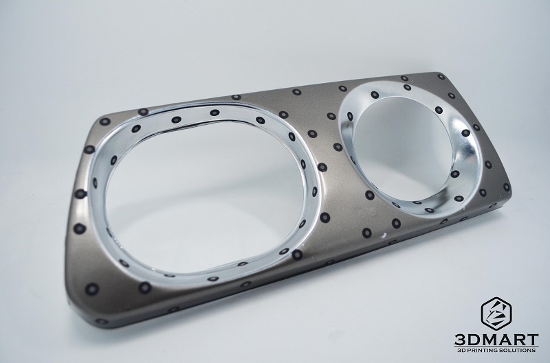 【3D掃描】後車燈金屬件掃描實測文 先前我們也用過3D掃描器掃描過機車車殼,不知道各位還有沒有印象? 車殼最讓人驚豔的就是背後細(xì)節(jié)度的呈現(xiàn),連接的細(xì)微孔洞都有非常完整的被掃描出來。 這次同樣的也將為各位介紹與車子相關(guān)的零件-汽車後車燈外殼, 首先來看看要掃描的物件造型吧,前方有兩個洞為放置車燈的區(qū)塊,在後方則是有多出一個把手的部分。 由於物件是金屬高反光的材質(zhì),因此我們需要先貼上掃描定位貼紙,貼完後再進行噴粉。 掃描定位貼紙的在貼時要注意盡量不要讓它的位置太過規(guī)則,不要太整齊,點貼得越密集也更能掃出精準(zhǔn)的效果。 前面與背面記得都要貼好貼滿唷~ 經(jīng)過一段時間掃描後,完成的3D模型檔案