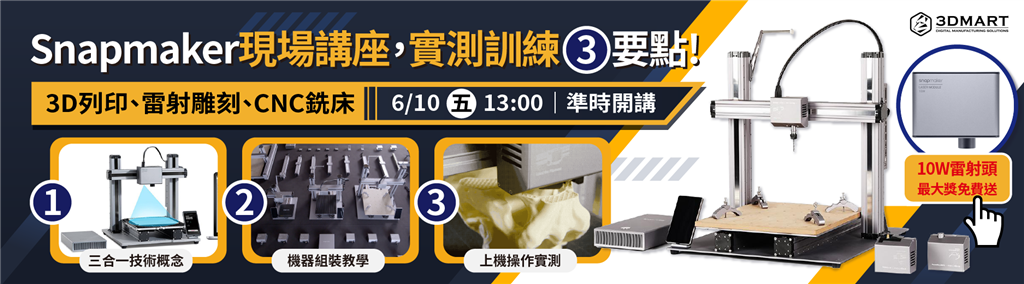 雷雕雷切你選誰?小孩子才選擇!看效果超心動嗎?Snapmaker 10W雷射頭免費(fèi)送!三合一技術(shù)專業(yè)培訓(xùn),Snapmaker現(xiàn)場開箱講座,實(shí)測訓(xùn)練3要點(diǎn)!3D列印、雷射雕刻、CNC銑床,三大工業(yè)技術(shù)好難學(xué)?不學(xué)你真不知道!技術(shù)基礎(chǔ)簡單,限量名額馬上搶: