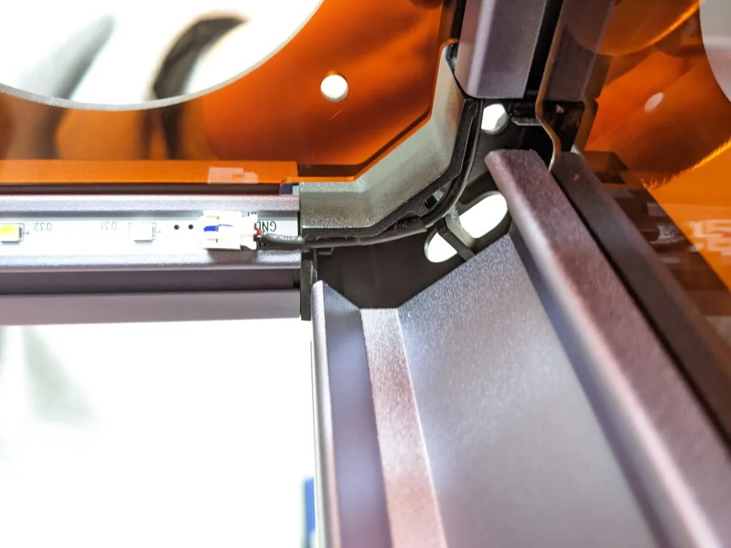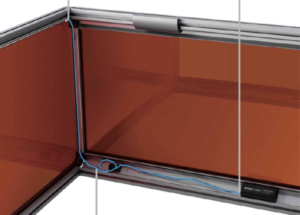 將電線放入底部型材連接器 – 然後進入 X 型軸 – 再從頂部連接器出來